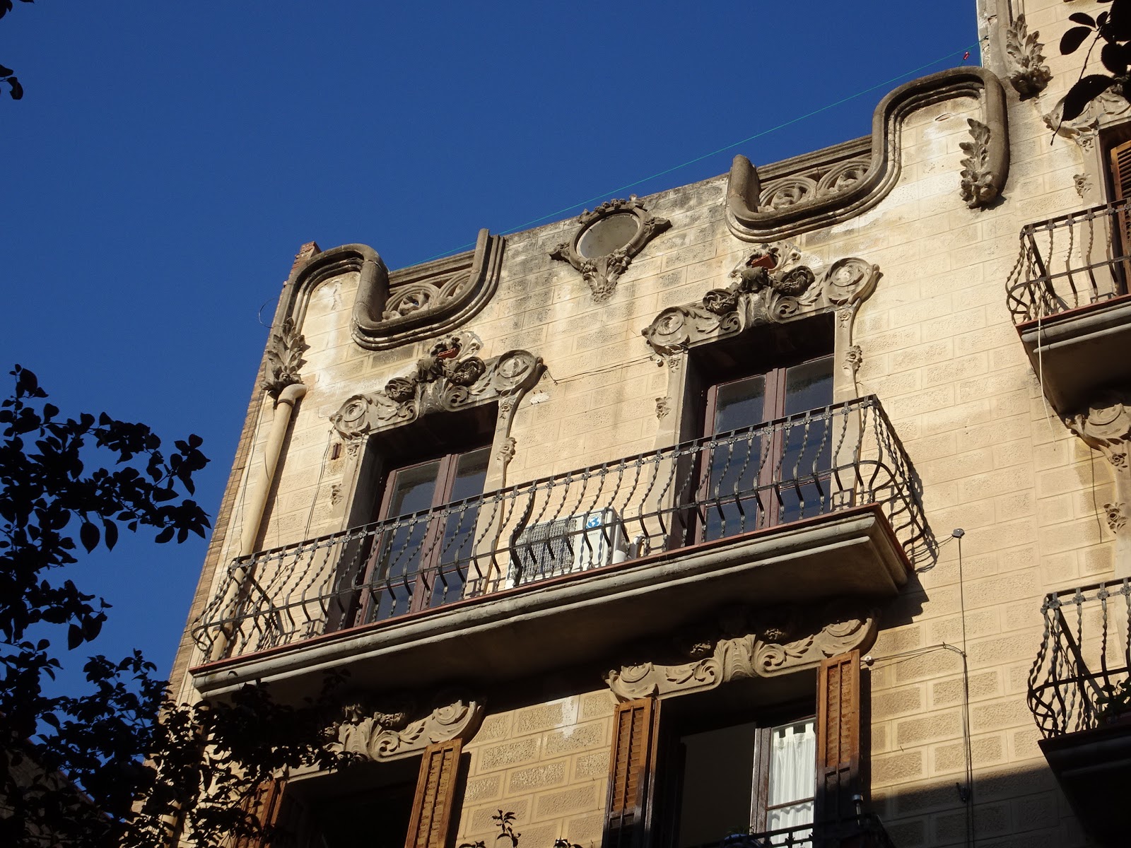 Con respecto a los tres primeros son, en fachada principal, prácticamente iguales, ya que el tratamiento de fachada es de estuco y la decoración en alto relieve de los dinteles es la misma. Los balcones corridos del número 12-14 tienen barandilla de hierro del mismo diseño, y el elemento de coronamiento también es igual en el número 14 (aunque en este ha desaparecido la parte central, como en el número 12) y en el número 18. A pesar de la diferencia de altura original entre ellos (el número 12 tiene planta baja más tres plantas piso y remonta posterior; el número 14 tiene planta baja, entresuelo más tres plantas piso y remonta posterior, y el número 18 tiene planta baja más cuatro plantas piso y cubierta azotea), todo hace pensar en una misma autoría.
