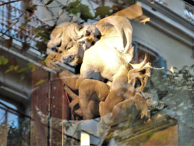 "Edificio proyectado por Domènech i Montaner en 1895-98 por encargo del impresor Josep Thomas i Bigas. Originalmente constaba sólo de planta baja y piso. Fue ampliado y reformado en 1912 por el yerno de Domènech, Francesc Guàrdia i Vial, bajo la supervisión de aquel. Su aspecto actual es, pues, fruto de aquella reforma, que añadió tres plantas más y reubicó arriba del todo las dos torretas desiguales que ya existían en la obra original. Una cuidadosa restauración fue llevada a cabo por Cristian Cirici en 1979."