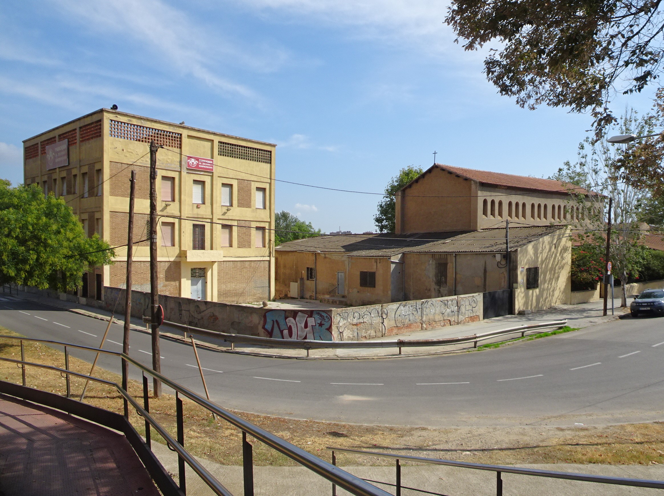 La capilla original desapareció con la Guerra Civil, y el edificio actual, neoclásico de 1950, imita a las basílicas paleocristianas, características por una nave central ancha y alta con dos laterales más bajas que dan lugar a un triforio que permite el paso de la luz natural.